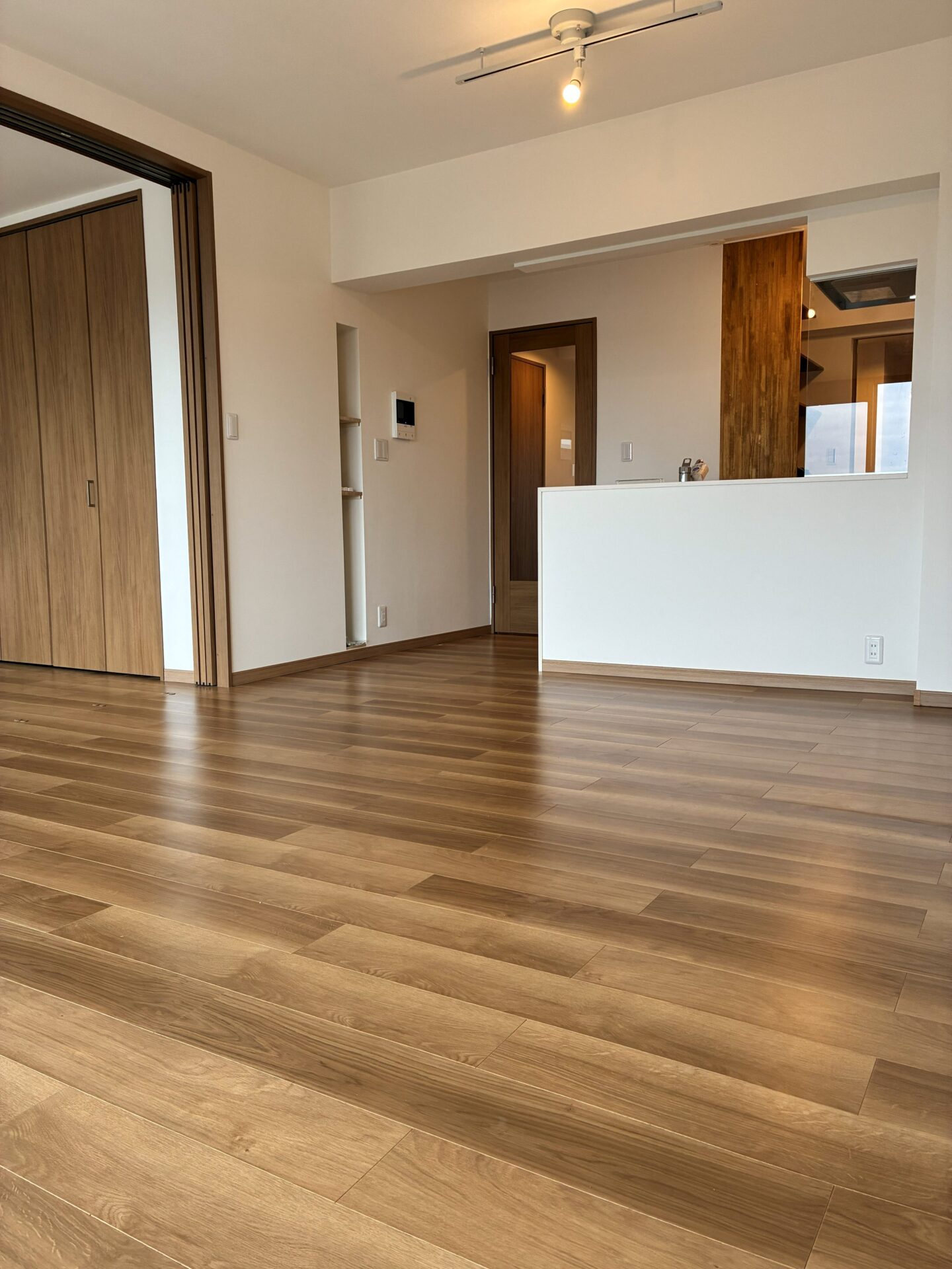 グレイス堤通公園の1階がモダンで洗練された空間に生まれ変わりました。 明るく開放的なリビングダイニングには、木目調の温かみのあるフローリングが広がり、落ち着いた雰囲気を演出しています。キッチンは淡いグレーのタイル張りで清 …